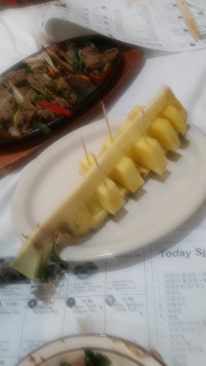 Food was tasty and a good value. Staff were very nice. Looks can be deceiving when looking at the restaurant from the outside. It looks like the building used to be an old American dinner that’s a little beat up but once you enter you will be greeted by a clean restaurant with clothed tables and chairs. However you can still see some of the old diner inside so it conflicts with the Korean accents. Obviously not a deal breaker but I hope they invest for a modern remodel.